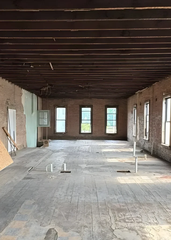 This phase was a full-scale rebuild. We replaced floor joists, corrected structural issues, and made significant adjustments to support the roof properly. New ceilings, new framing, and new walls went in as we rebuilt the space from the inside out. Every part of the space needed attention, and nearly everything you see today was constructed during this stage. It was a major transformation that required careful planning, precise work, and a complete structural overhaul.