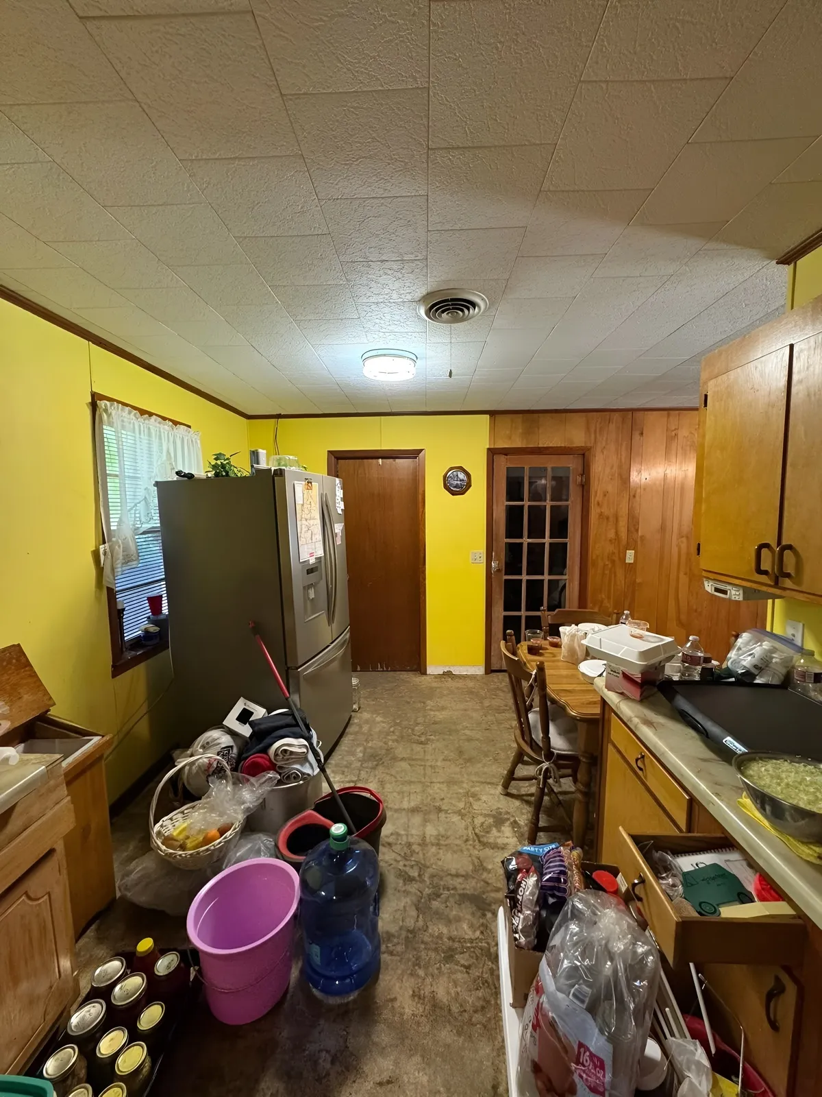 The kitchen and living area were in rough shape when we first stepped in. Heavy wear, built up grime, and outdated finishes made both spaces feel dark, cluttered, and uncomfortable. The floors were dirty, the walls were stained, and the overall environment felt tired and neglected. It was clear these rooms needed a full, top to bottom refresh to bring them back to life.